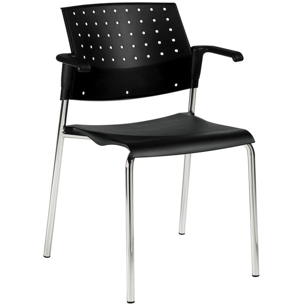 Black Seat Color - Polypropylene Seat Material - Black Back Color - Polypropylene Back Material - Chrome Frame Color - Four-legged Base - Armrest - 1 Each
