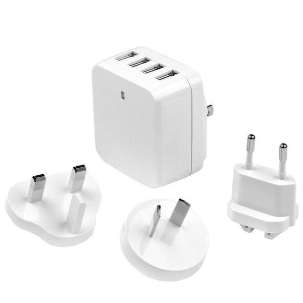 Charge 2 tablets and 2 phones simultaneously, from almost anywhere in the world - 4 Port USB Wall Charger - International USB Charger - Universal USB Wall Charger - Travel Charger - White 4 Port USB Charger - Smart IC Technology - High Power 34W/6.8A | |