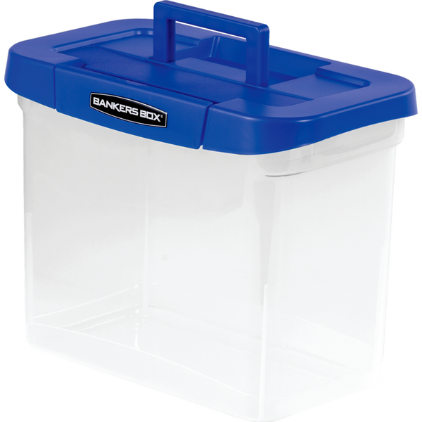 External Dimensions: 14.3" (361.95 mm) Width x 8.5" (215.90 mm) Depth x 11" (279.40 mm) Height - Media Size Supported: Letter 8.50" (215.90 mm) x 11" (279.40 mm), Legal 8.50" (215.90 mm) x 14" (355.60 mm) - Lid Lock Closure - Heavy Duty - Stackable - Plastic, Polypropylene - Clear, Blue - For File, Document, Transportation, Storage - 1 Each