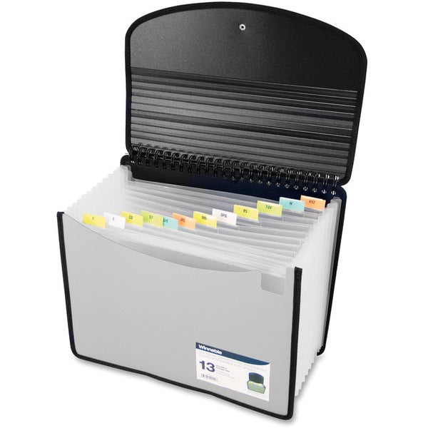 8 1/2" (215.90 mm) x 11" (279.40 mm) - 13 Pocket(s) - Polypropylene - Black - Durable, Flap, Elastic Closure, Tab, Flexible - 1 Each